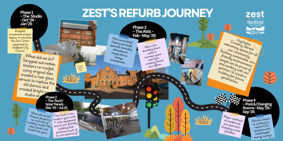 We manage a flagship community building, the Zest Centre, and deliver a range of responsive and integrated community, leisure, health and work support services to adults and children from across Sheffield.