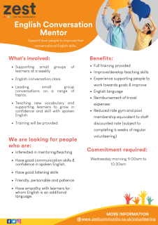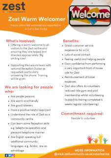 If you would like further information about any of these roles, please us the enquiry form below or email volunteering@zestcommunity.co.uk